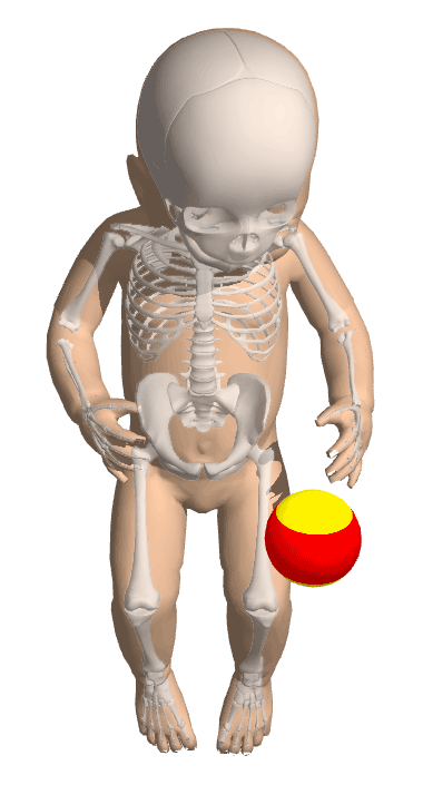 High-resolution examples: An infant model with soft flesh and rigid bones showing two-way interaction of soft and rigid bodies.